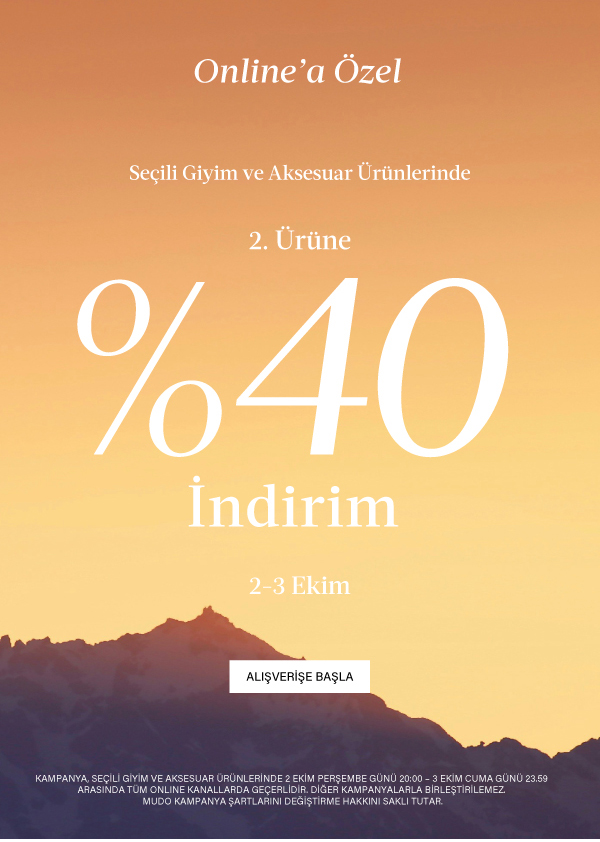 📣 Online'a Özel %40 İNDİRİM! Seçili Giyim ve Aksesuar Ürünlerinde 2. Ürüne %40 İndirim Fırsatını Kaçırma.