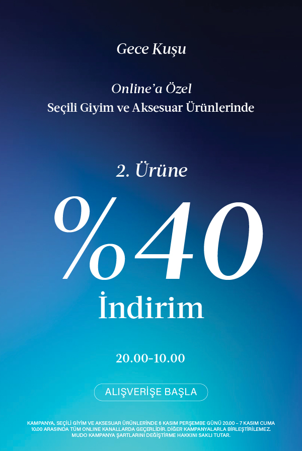 📣 Gece Kuşu'na Özel %40 İNDİRİM! Seçili Giyim ve Aksesuar Ürünlerinde 2. Ürüne %40 İndirim Fırsatını Kaçırma.